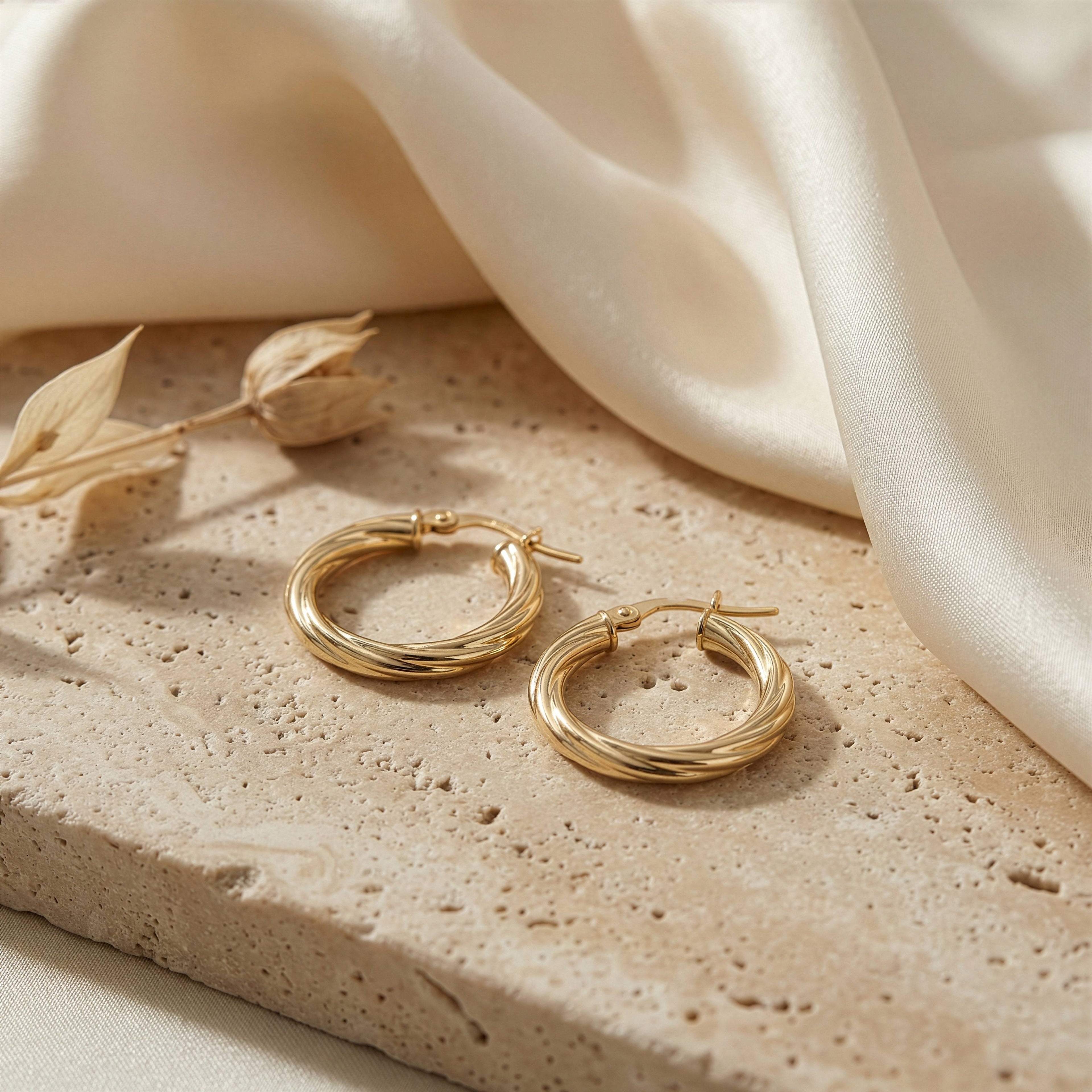 10k Yellow Gold Twisted Hoops